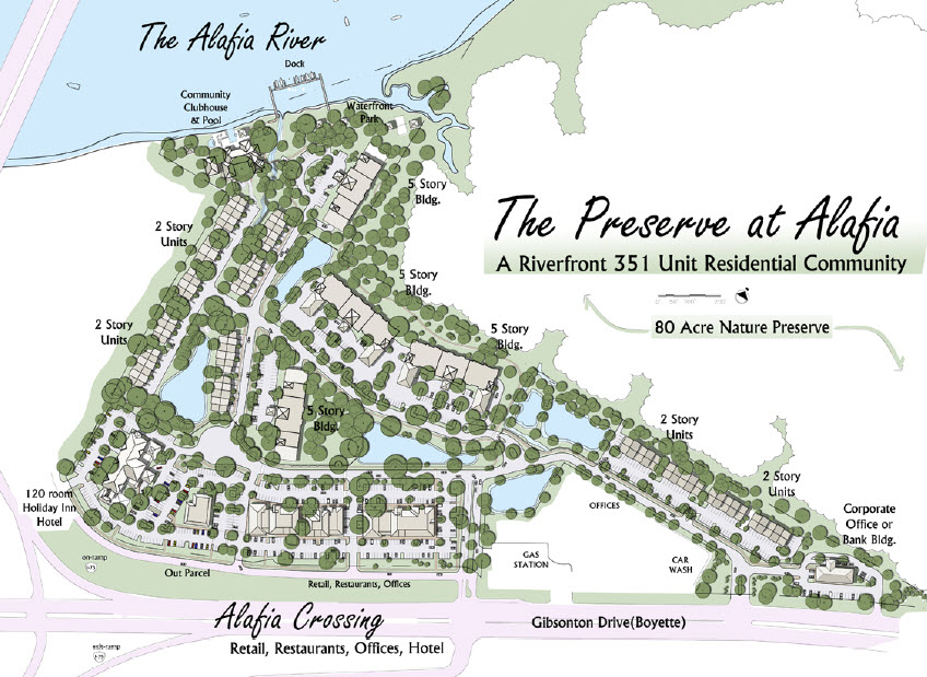 RETURN TO NEWS INDEX Luxury development breaks ground near the Alafia River RIVERVIEW - Owners of an upscale apartment, shopping and hotel development on the Alafia River broke ground on the estimated $100 million project this week. The Preserve at Alafia will include 351 luxury waterfront apartments and is the first in a three-phase development. Later, the developers plan to construct more than 40,000 square feet of retail space, another 20,000 square feet of office space and 10,000 square feet of restaurant space. The final phase of the project, which is being developed by the Tampa-based Garrison Developer Group of Florida, will include a Holiday Inn hotel and conference center. The commercial and hotel space will be called Alafia Crossing. The development sits on 40 acres on the southern banks of the Alafia River, where the Alafia River RV Resort once sat. The land, which is east of Interstate 75, also is adjacent to the Alafia Nature Preserve. Developer Rey Ortega, president of Garrison Developer Group, said he expects the apartments to be complete by June 2011. The commercial and hotel phases will commence as soon as the group secures more funding. He touts the waterfront luxury complex as a haven for professionals who want access to downtown Tampa but don't want to live there. "The access is what's so great about this site," Ortega said. "There's nothing like this in the Brandon area." Chandra Broadwater can be reached at cbroadwater@sptimes.com, or 661-2454. |